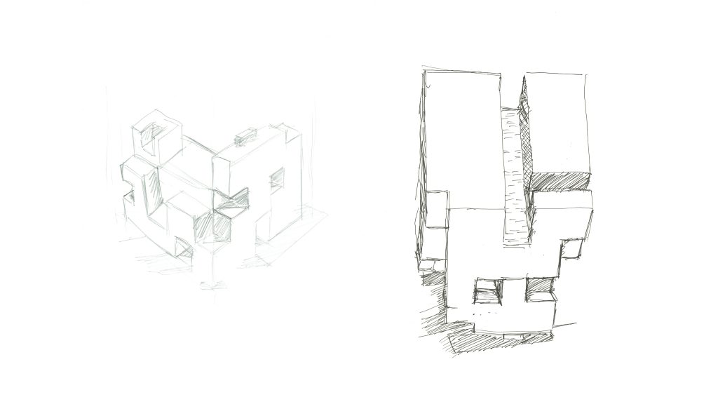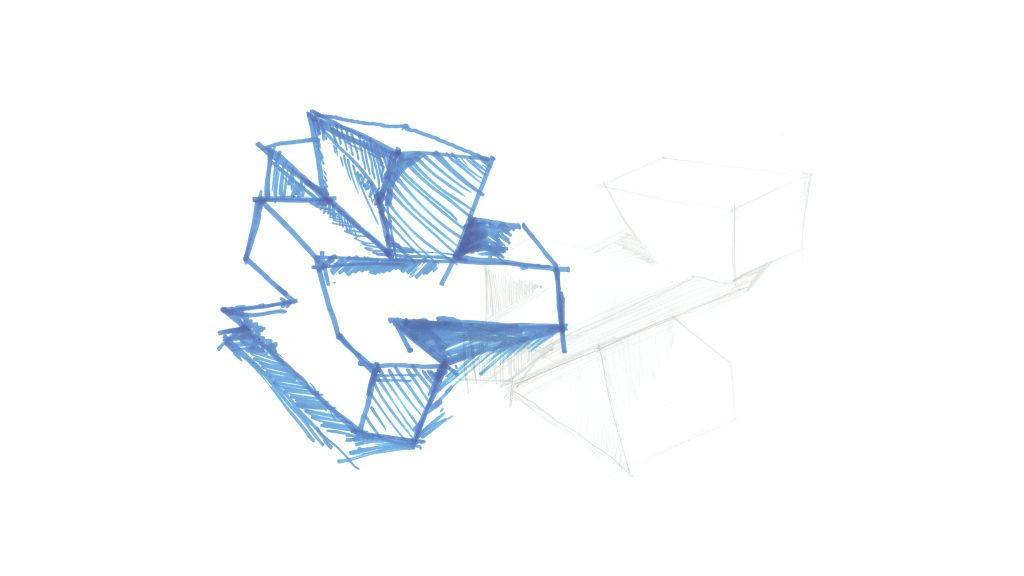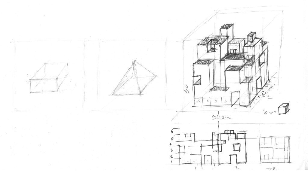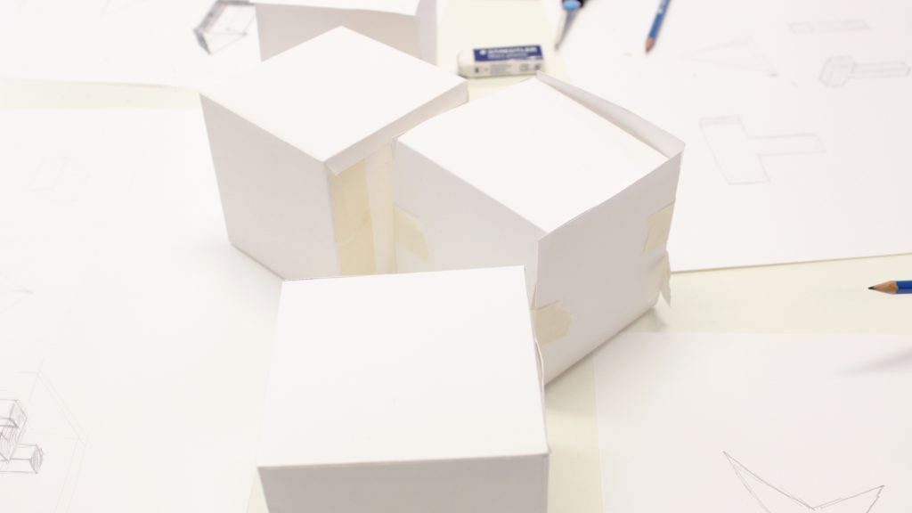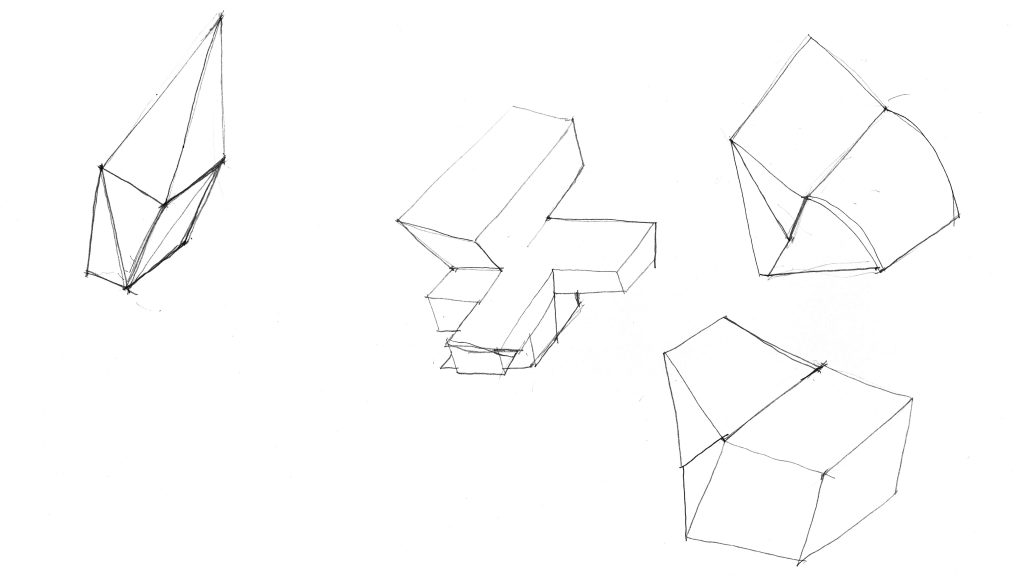 3 dimensions is a research project we did in the studio. The idea was to draw an imaginary shape within 100mm² space. Once we had the drawings of our imaginary shapes we modelled our shapes and then sent them to be 3D printed.