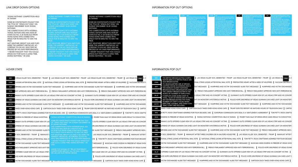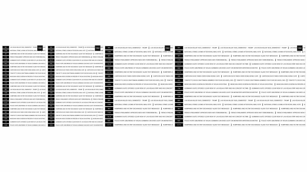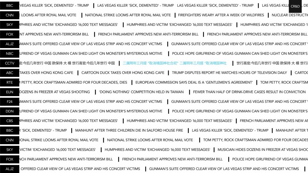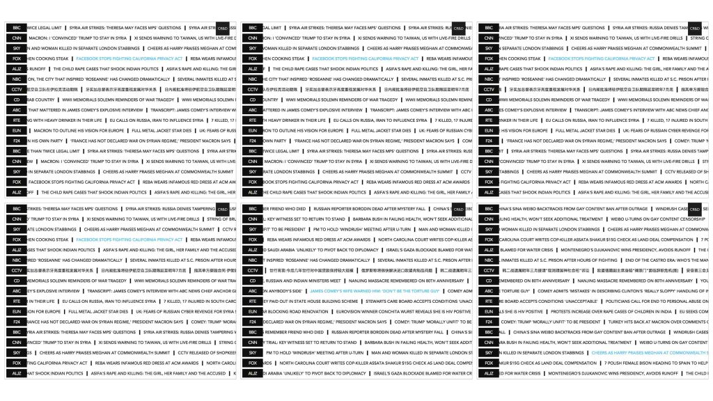 Self directed project where we built a ticker showing up to the minute headlines from a variety of news outlets. The idea for the project is to show how news is represented differently in the media in different cultures. The challenge in this project was how to pull live content while making the page responsive.
